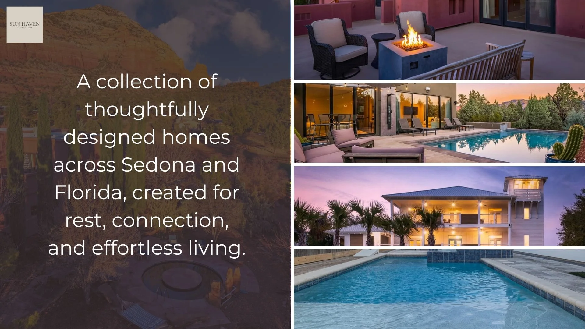 When planning your next escape, whether drawn to Sedona’s red rock landscapes or the coastal rhythm of Florida, the vacation home you choose shapes the experience. Sun Haven Collection offers design forward vacation homes created for rest, connection, and ease.
